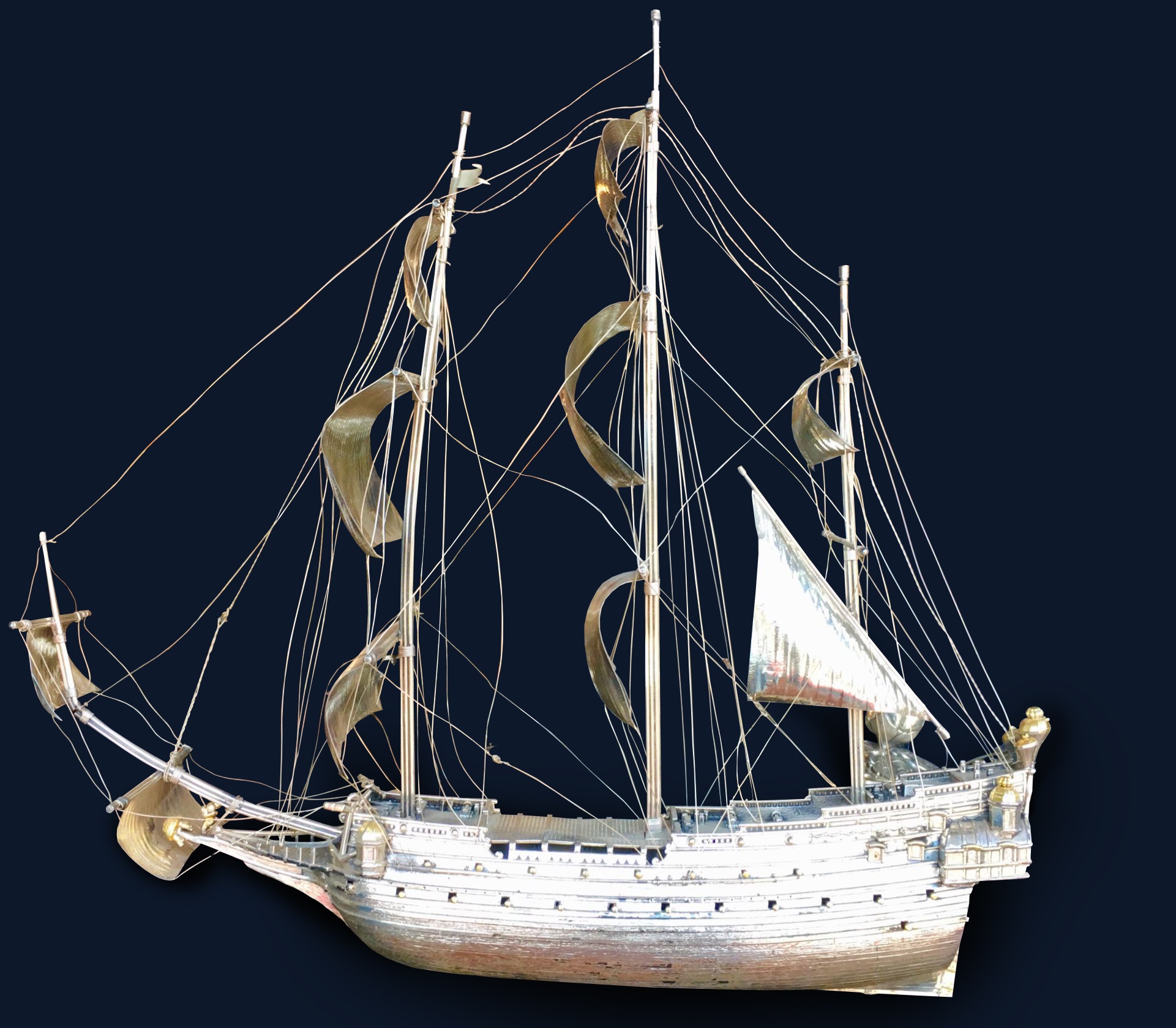 註:義大利有舉世聞名的水都威尼斯,但許多人不知的是在20世紀義大利的純銀製器也是頗負盛名,這次特別有機會收到這件船體刻有925純銀標記來自翡冷翠/佛羅倫斯的手工大船,對喜歡收藏擺設航海主題的藏家好友來說,是一件不容錯過的藝術臻品!
