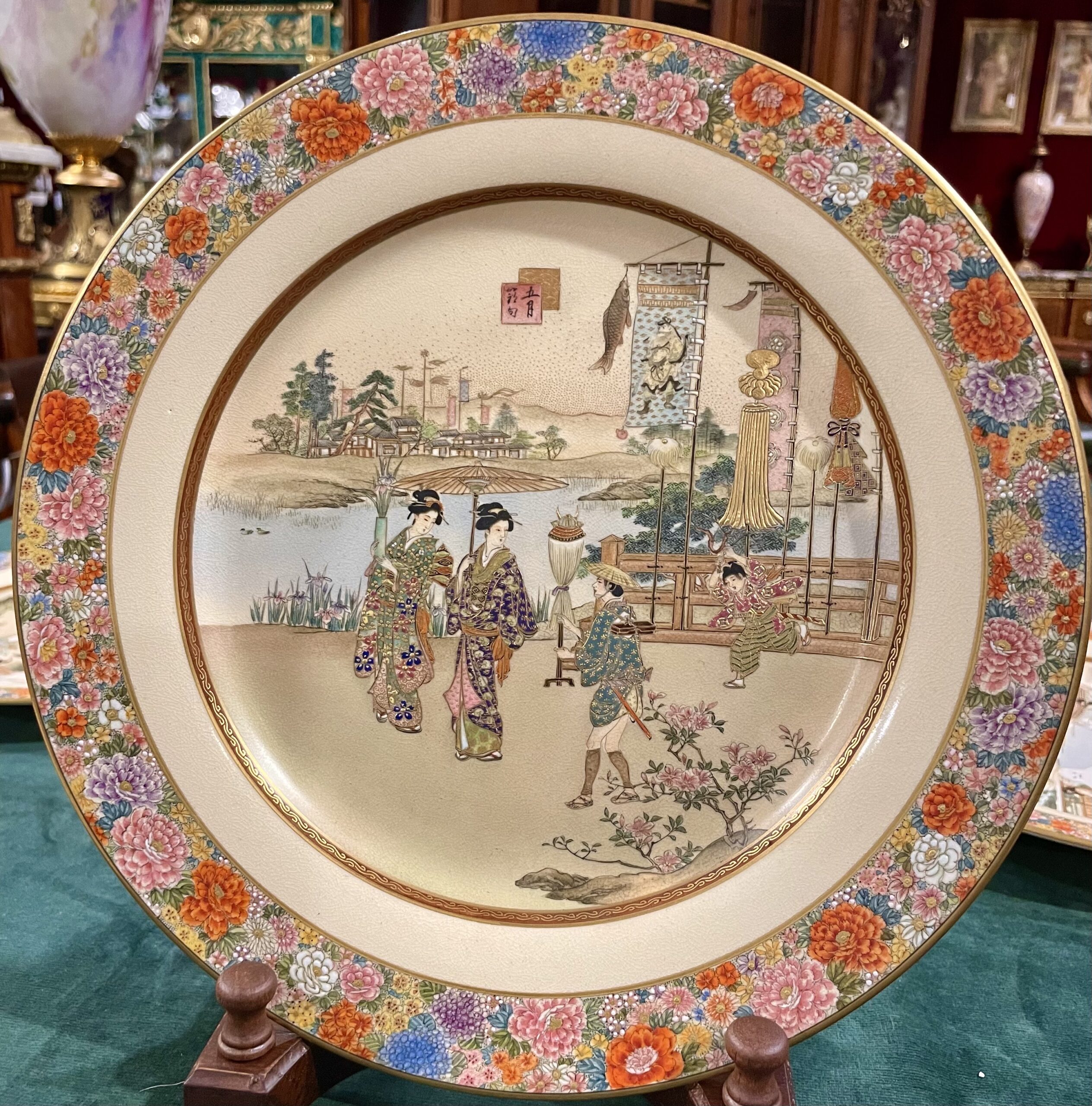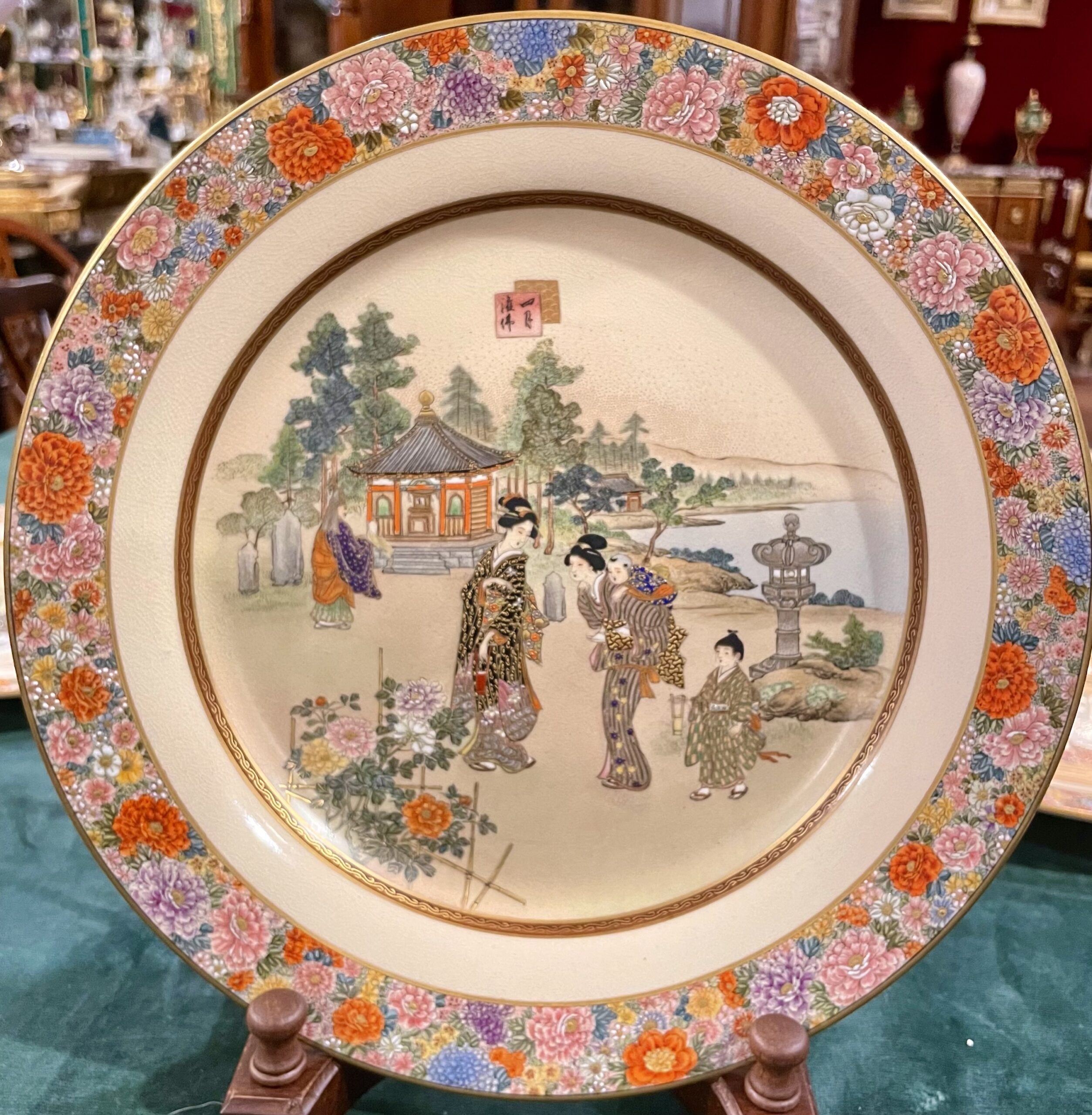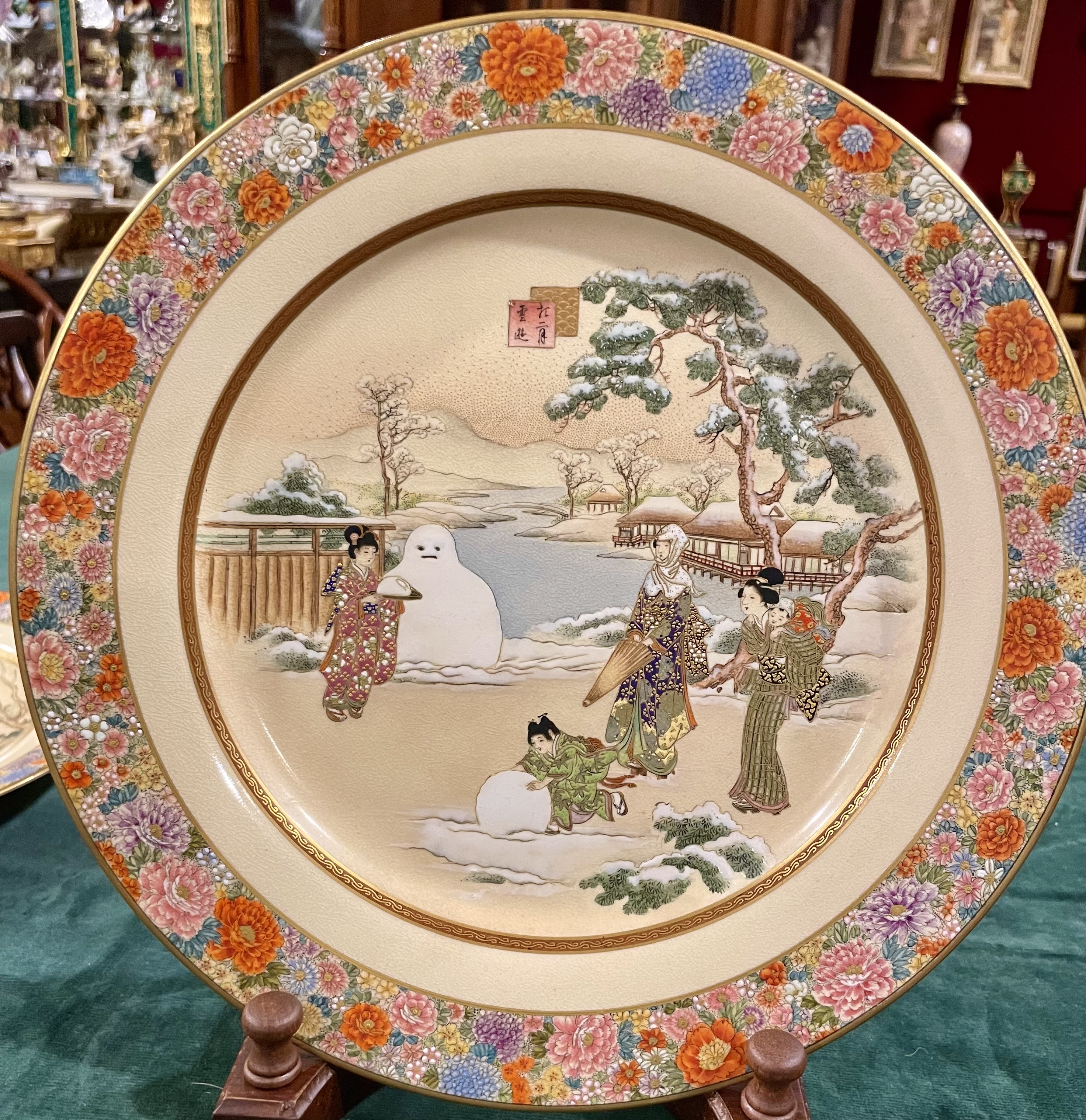 明清以後,日本工匠專門來到中國瓷都景德鎮學習青花燒造工藝。日本明治時期(1868-1912)在出口浪潮的刺激下,形成並發展了京都風格或稱新古典薩摩陶裝飾風格,大量運用金粉,步入了薩摩製作的精品時期和黃金時代。日本薩摩瓷裝飾名家有幾十個,但最出色的是落款藝名為:藪明山、錦光山家族、兩位亮山、精巧山、松本 寶山 、帶山等。