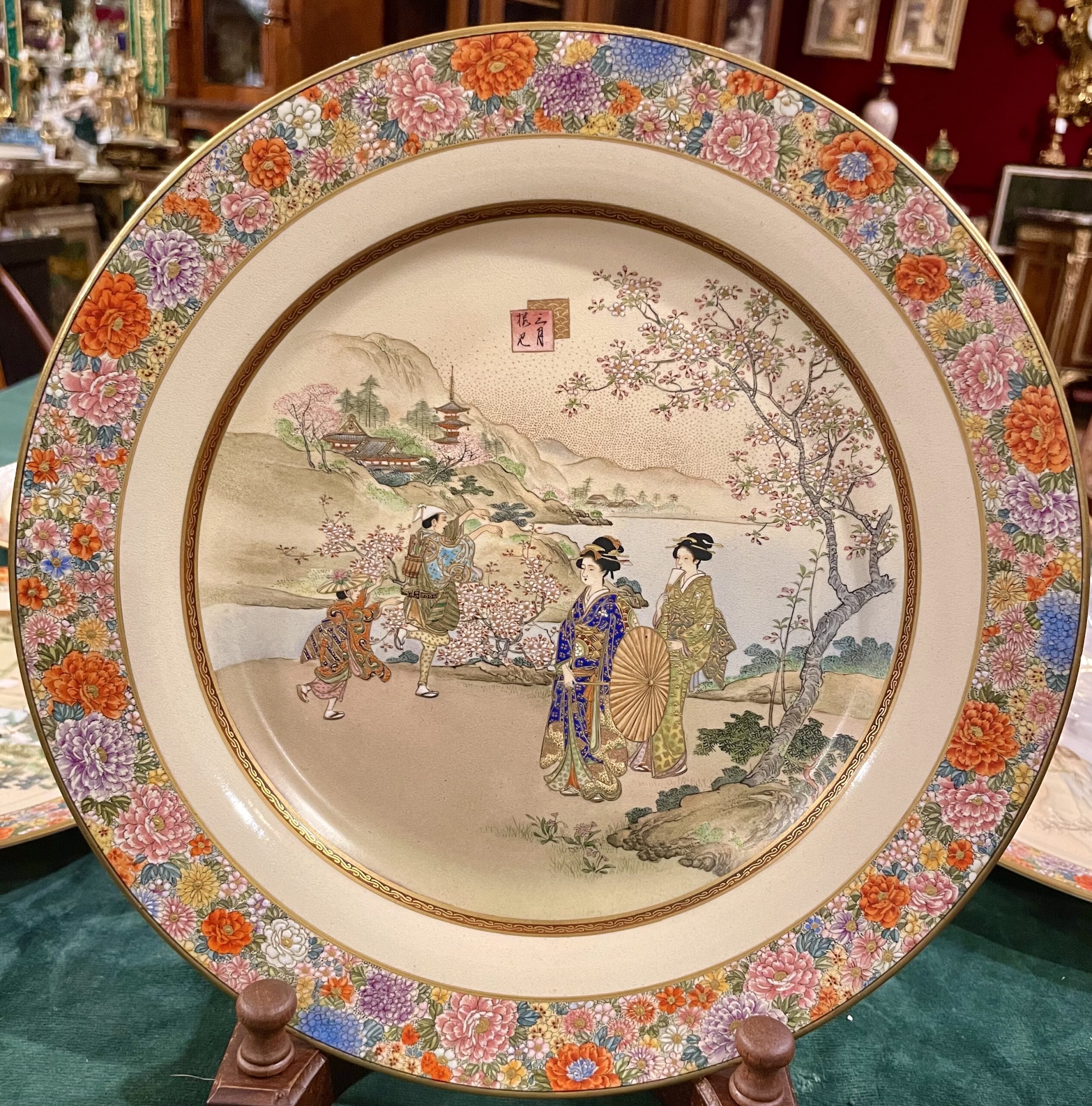 每一片盤子都以琺瑯和黃金手繪而成,構圖雅致具有韻味。