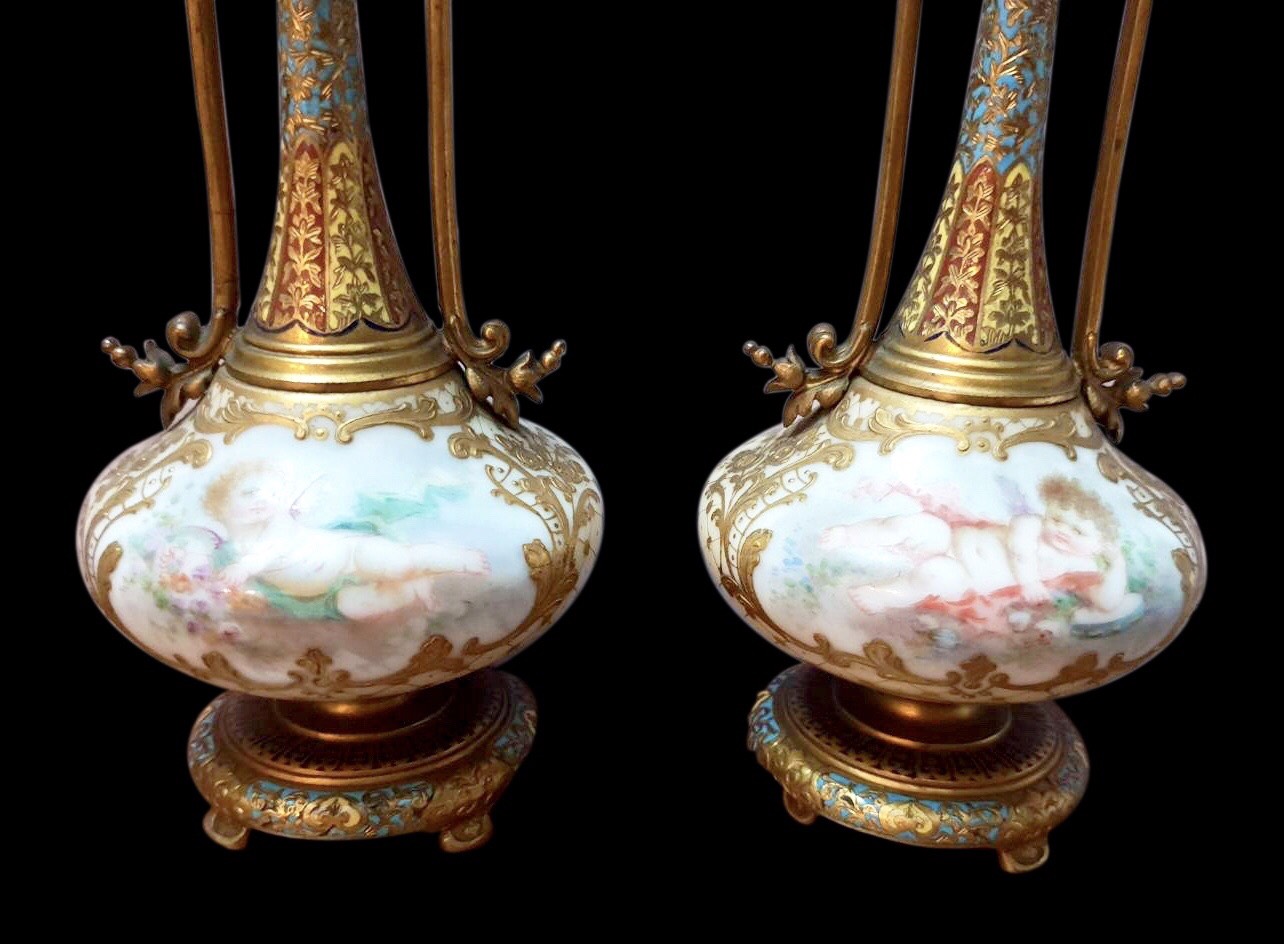 Sèvres金飾邊框通常做工精細或帶有微妙圖案的,複雜的圖案則會的琺瑯珠點且具有立體觸感。就像Meissen一樣,Sèvres是一家深受王公貴族喜愛的瓷窯,常有特殊訂單,委託和生產皇室和外交禮物,以及皇室和貴族直接購買的禮物。瑪麗·安東尼(Marie Antoinette)是賽佛爾的愛用者,訂購花瓶、茶具和整套餐具。