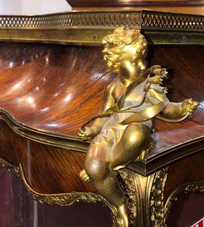 在十七世紀末,許多歐洲家具師傅正流行研究一種源於亞洲的家具漆器技法(在當時的日本工藝裡,它的生產過程屬於高精緻度,高單價的) 他們從當時的中國進口漆器的原料 ,由於這種漆的表面散發著一種有深度,如緞面ㄧ般的優美光澤。