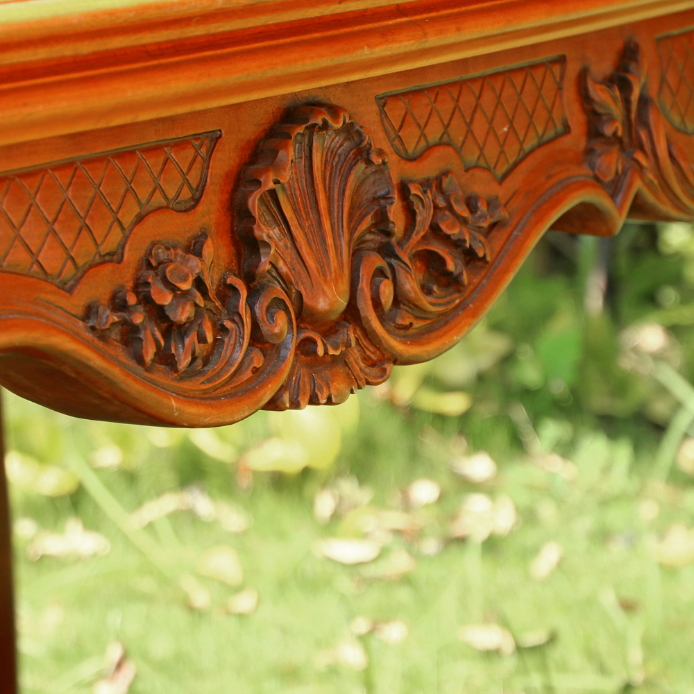洛可可一詞源於法語Rocaille e Coquille,簡稱為Rocaille,意大利人將其誤傳為Rococo。洛可可風格是路易十五時期在法國宮廷中形成的一種室內裝飾手法,並成為18世紀歐洲蔚為風潮的造型裝飾藝術。不同於路易十四時期的巴洛克風格,強調傢俱繁華氣度來彰顯君主權威,路易十五時期的傢俱迷人、優雅、輕盈,從大自然中吸取靈感,以複雜的波浪曲線模仿了貝殼、岩石的外形,巧妙地描繪當中的纖巧和華麗,將之提煉成一種藝術形式,另外如茛苕(feuilles d’acanthe)、燈心草(joncs),並重拾渦紋花飾細木鑲嵌技術。除此之外,也強調了適用的輕便性,刻意打破古典主義中的對稱與均衡的藝術規律,因此形成了具有濃厚浪漫主義色彩的新風格。洛可可藝術風格它所呈現出的藝術風格高雅貴氣、繁複多變,在造型上由凸起的貝殼紋樣曲線和莨苕葉呈現出的鋸齒形狀相結合,以C形、S形和旋渦狀曲線紋飾,創造出一種非對稱、富有動感、自由奔放而低調華麗的裝飾藝術。