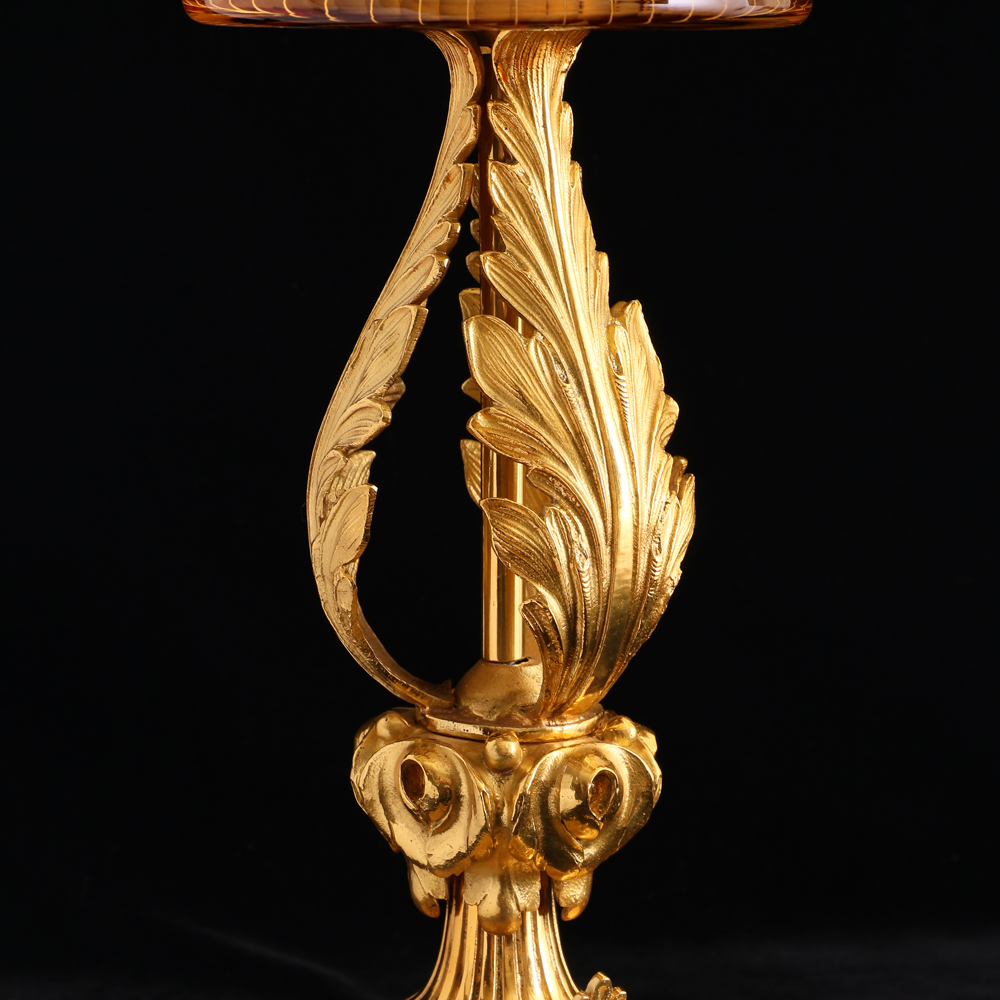 / 法國銅鍍金琥珀色刻花水晶高果盤