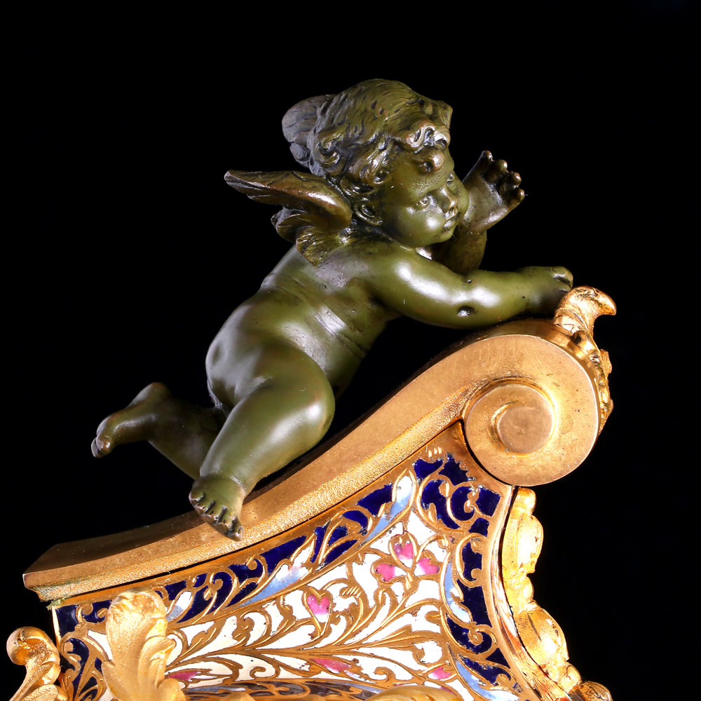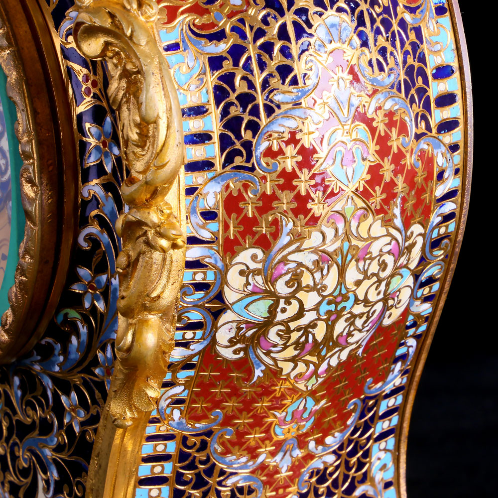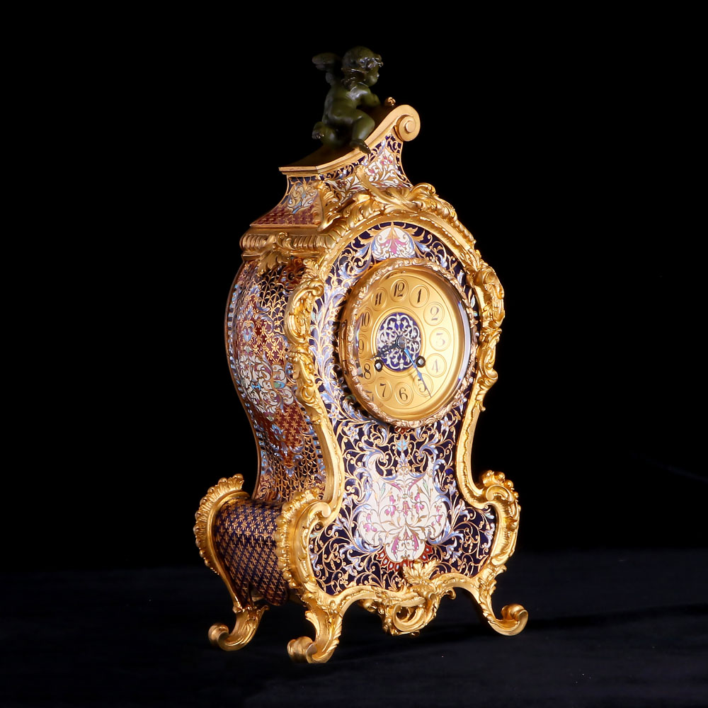 鎏金Ormolu是法文,其作法簡單說明是把金子和水銀合成“金汞齊”﹐將“金汞齊”塗在要鎏金的物體表面﹐加溫至極熱的溫度後使水銀蒸發,只剩下K金留在銅表面而不脫落,其金色光澤性能夠永久維持。而因為汞加熱後揮發的氣體有毒性,所以使用汞來執行鎏金的技術,在1900-1910年左右,就被法國政府所明文禁止使用,所以之後鎏金座鐘數量驟減,只剩少數訂製品。至此之後任何一種技術,包括現今常見的電鍍技術,都沒有辦法超越銅鎏金所呈現出來的美感,因為電鍍的電鍍成色較為冷感,金屬質感較重; 電鍍金不是真金,是利用電解原理在物體表面鋪上類似金色的金屬,經過一段時間顏色會褪,不若鎏金的技術所呈現出來的K金質感,是色澤飽和的黃金色系,而且可以歷久彌新。