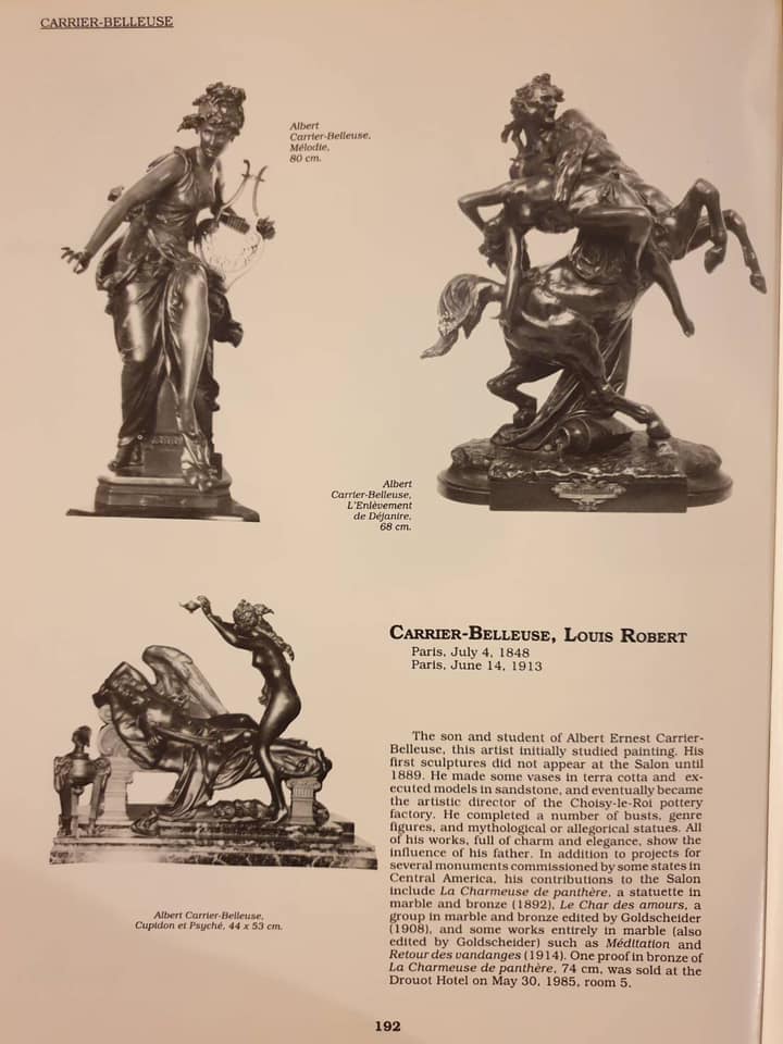 在1862年Carrier-Belleuse跟其他藝術家創立了法國國家美術協會,並被賦予法國榮譽軍團勳章,他的銅雕作品在1868年之前落款為”Carrier”或是”A. Carrier” 而在之後則統一成”Carrier-Belleuse”。