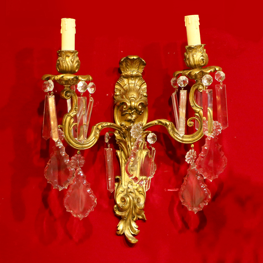 / 法貴族訂製厚銅浮雕水晶雙燈大壁燈