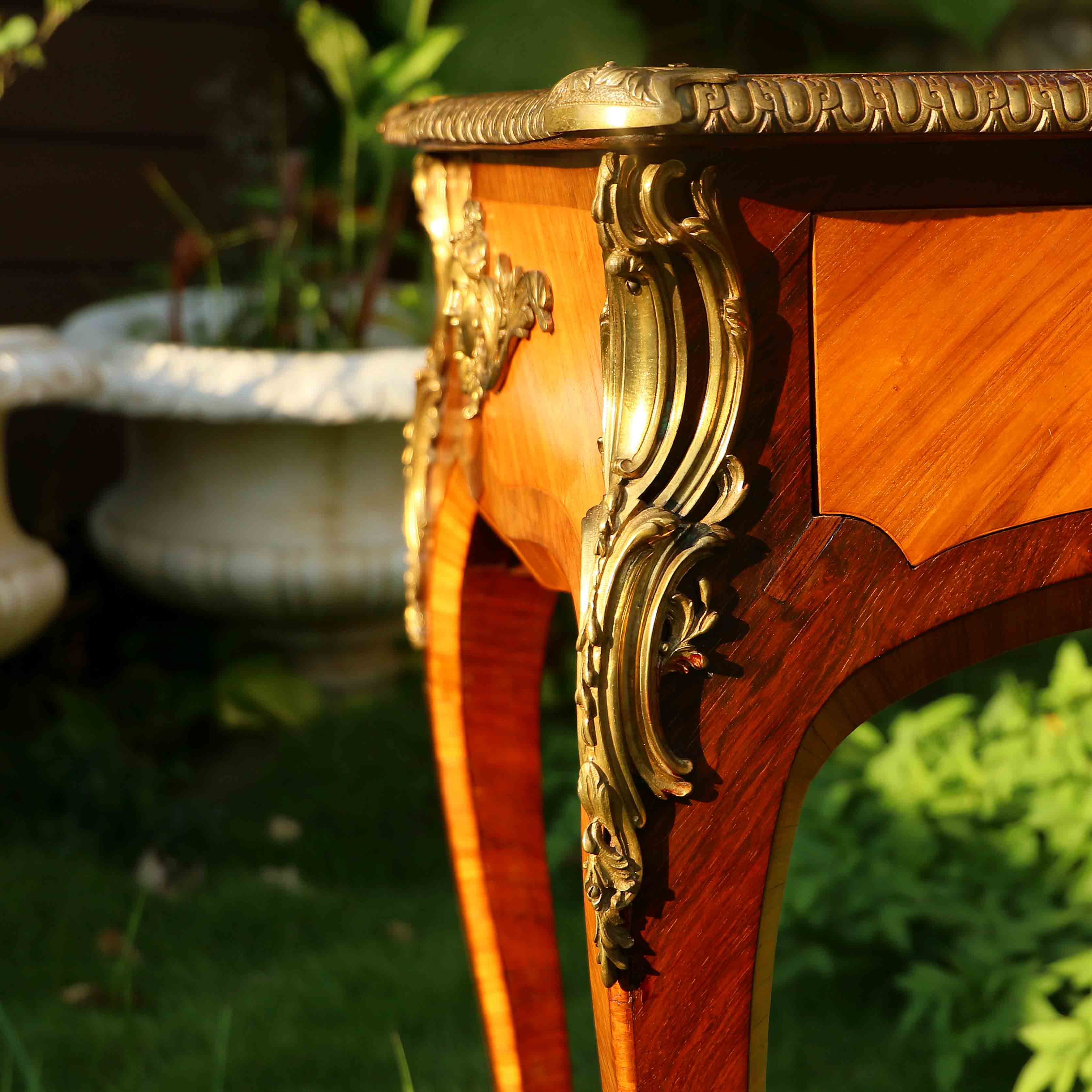 路易十五親政的時期,他將王室的活動重心帶回凡爾賽宮,並將當中部分房間運用洛可可風格重新裝修。法國貴族和上流社會的生活方式,可謂全歐洲最高貴而優雅,在18世紀的法國是沙龍文化來到鼎盛時期,沙龍是進行政治、文學、藝術、哲學討論或舉辦小型舞會的社交場所,所以洛可可式的傢俱設計反映出新的社會形態和生活方式,更強調生活的舒適性和愉悅感。隨著沙龍文化的流行,法國的桌子種類和樣式展生很大的變化。桌子形體變小、結構精巧、重量變輕易於搬動,以使交際活動更方便,彎曲的桌腳,展現流線纖細弧度,裝飾的細節充滿了畫龍點睛之妙,佐以優美充滿自然意象的雕飾為主要特徵,而且傢俱的外形採用流暢蜿蜒的凸曲線,從路易十五風格的展示櫃,可以找到不同於其他時期的優美弧度。