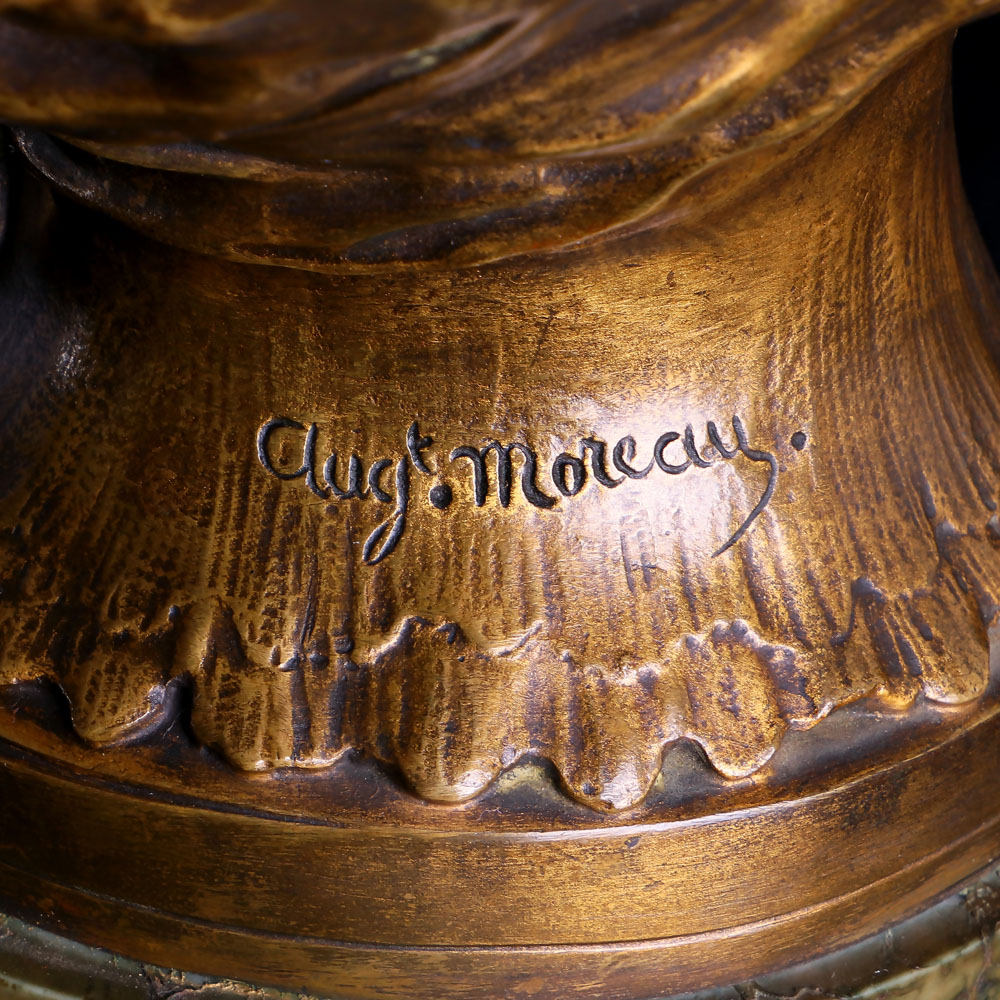 Auguste Moreau的創作和Art deco風格有某種環節的連結,但相較之下,他還是對Art Nouveau更有興趣,他變成這種新藝術潮流的代表性人物,Art Nouveau的創作中心是花卉形式的裝飾,曲線的線條,和融合藝術與生活的需求。他採用這種創作風格,設計雕塑品、人像和半身像,強調自然的線條和細節,這位匠心獨具的藝術家於1917年離世。