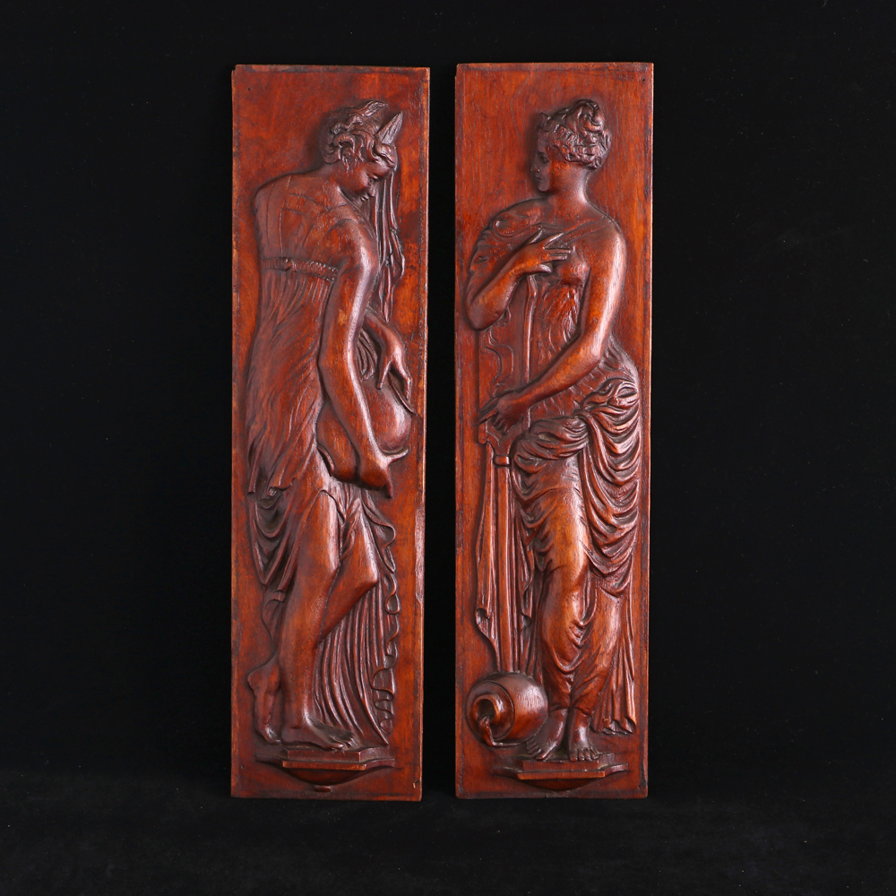 英國維多利亞手工雕刻提壺仕女木飾一對